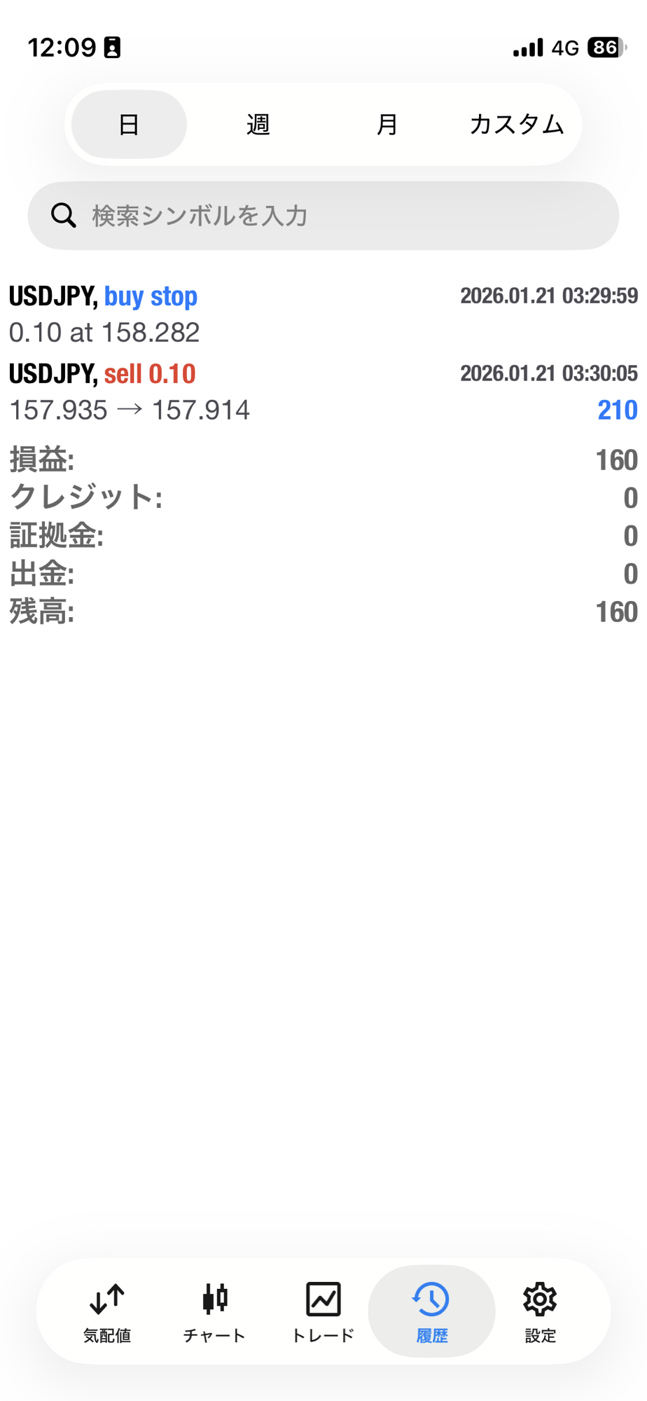 【FX自動売買ツール2 1月21日の運用結果】 トレード結果 X Facebook LINE コピー コメント 2026.01.21 超安定 ドル円 2ポジション シンプルEA (No.1030)日利 160円(0.1ロット) 1/20より分割して決済できる改良を加えております。