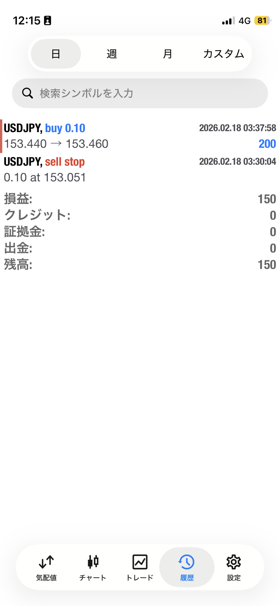 【FX自動売買ツール2 2月18日の運用結果】 トレード結果 X Facebook LINE コピー コメント 2026.02.18 超安定 ドル円 2ポジション シンプルEA (No.1030)日利 150円(0.1ロット)