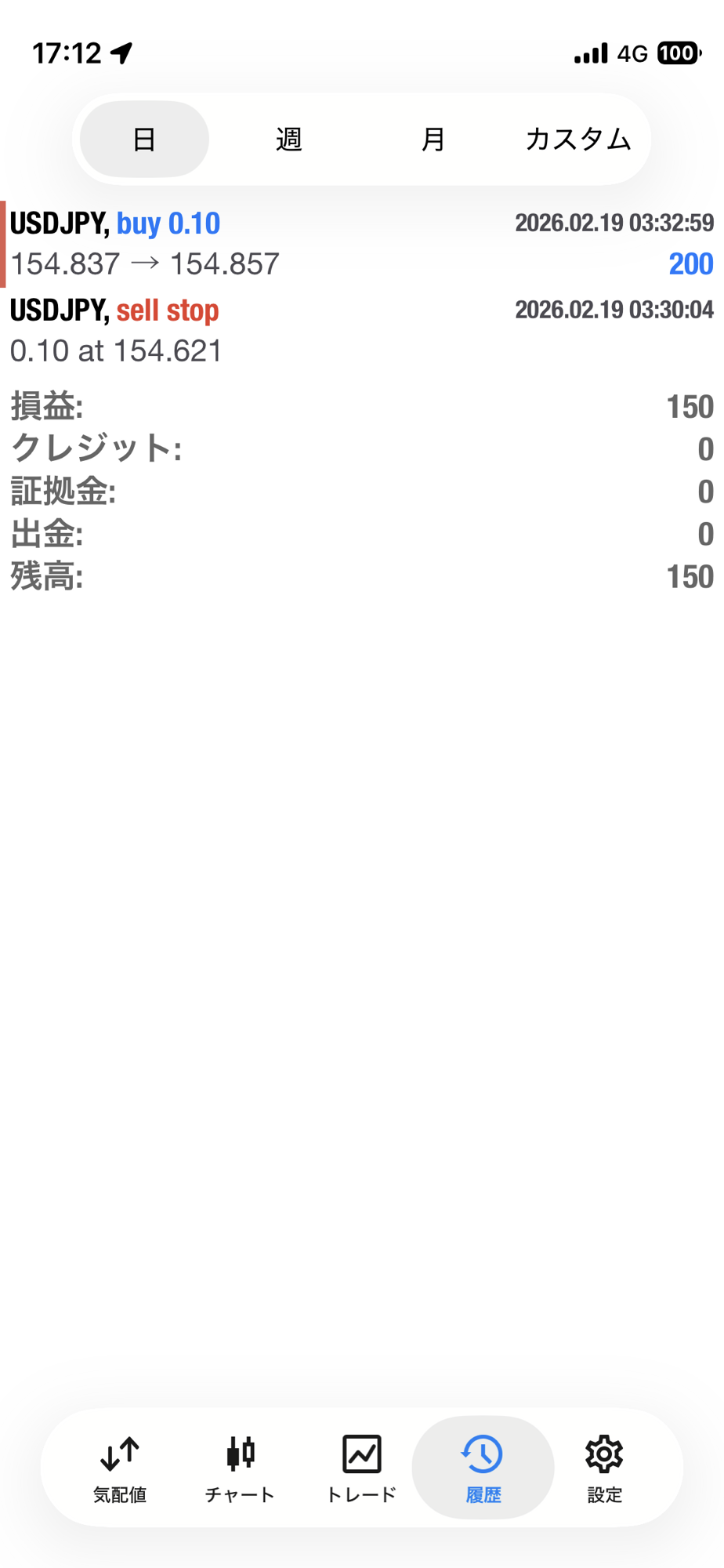 【FX自動売買ツール2 2月19日の運用結果】 トレード結果 X Facebook LINE コピー コメント 2026.02.19 超安定 ドル円 2ポジション シンプルEA (No.1030)日利 150円(0.1ロット)