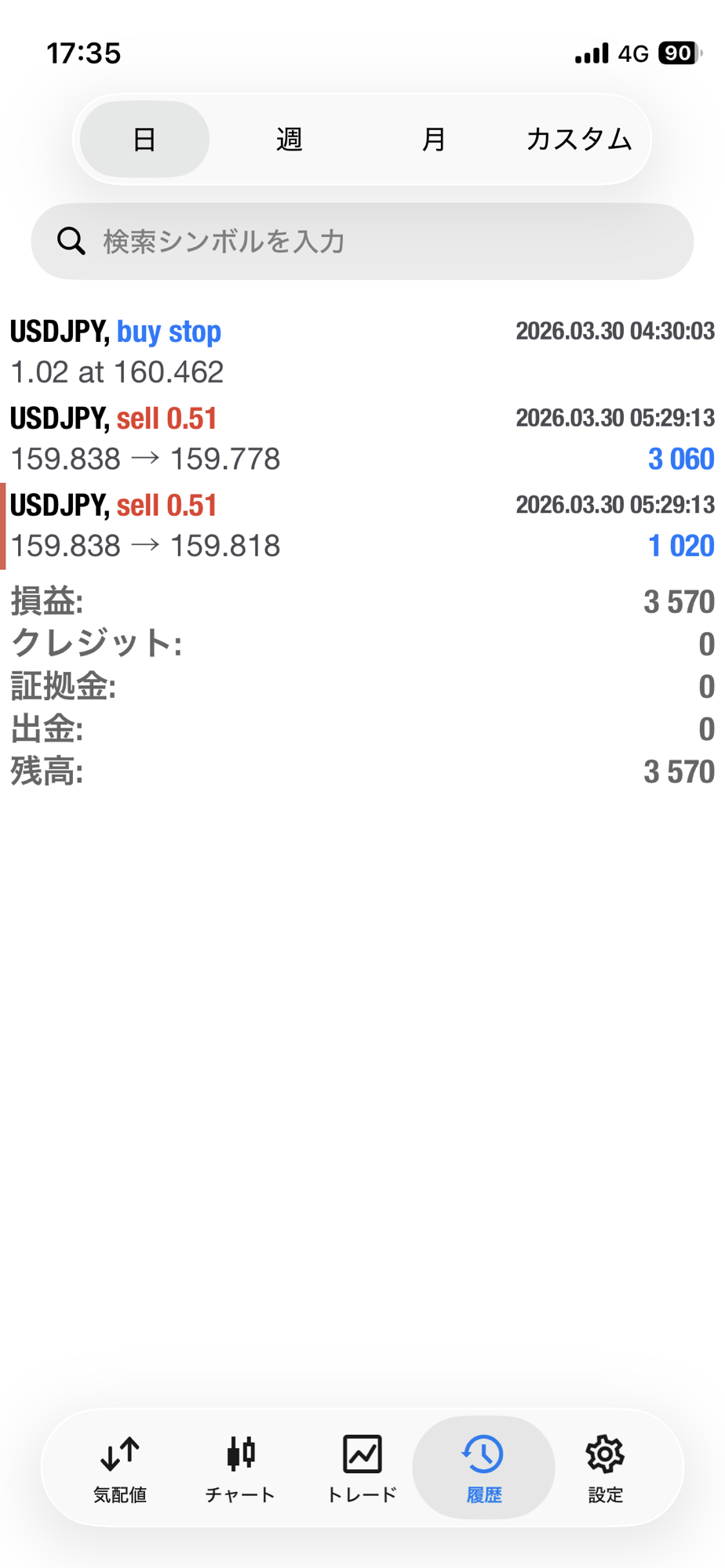 【FX自動売買ツール2a 3月30日の運用結果】 トレード結果 X Facebook LINE コピー コメント 2026.03.30 超安定 ドル円 2ポジション シンプルEA (No.1030)日利 3570円(自動ロット)