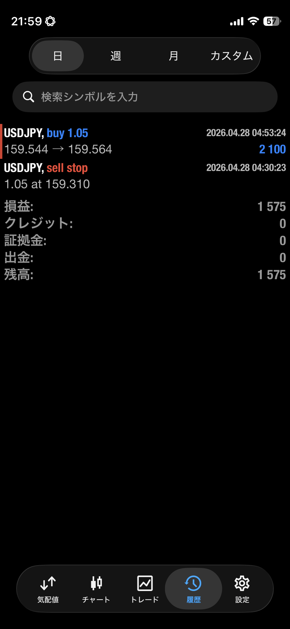 【FX自動売買ツール2a 4月28日の運用結果】 トレード結果 X Facebook LINE コピー コメント 2026.04.28 超安定 ドル円 2ポジション シンプルEA (No.1030)日利 1575円(自動ロット)